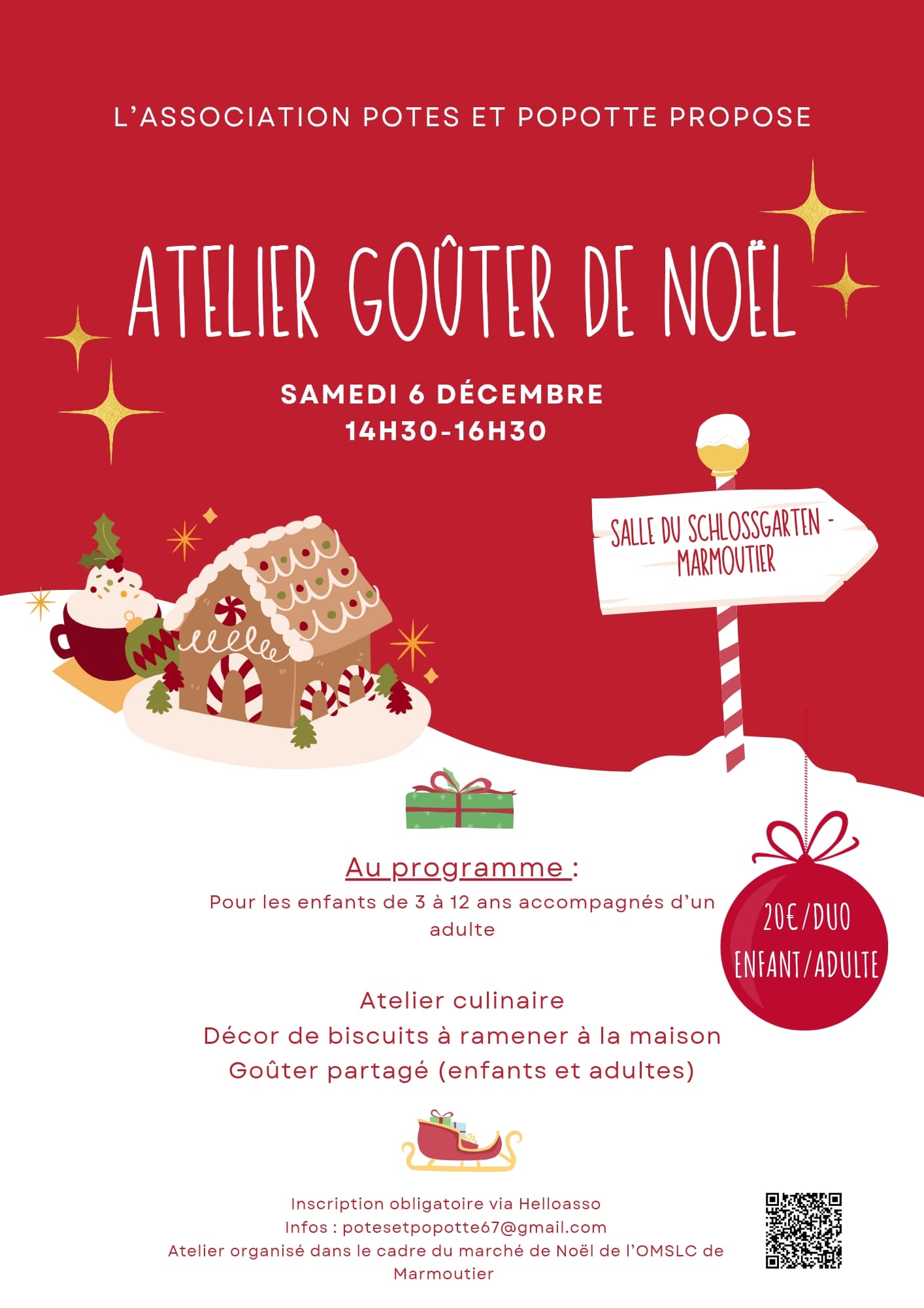 L'association Potes et Popotte propose aux enfants de 3 à 12 ans un atelier de confection d'un goûter de Noël qui sera partagé à l'issue de la séance.