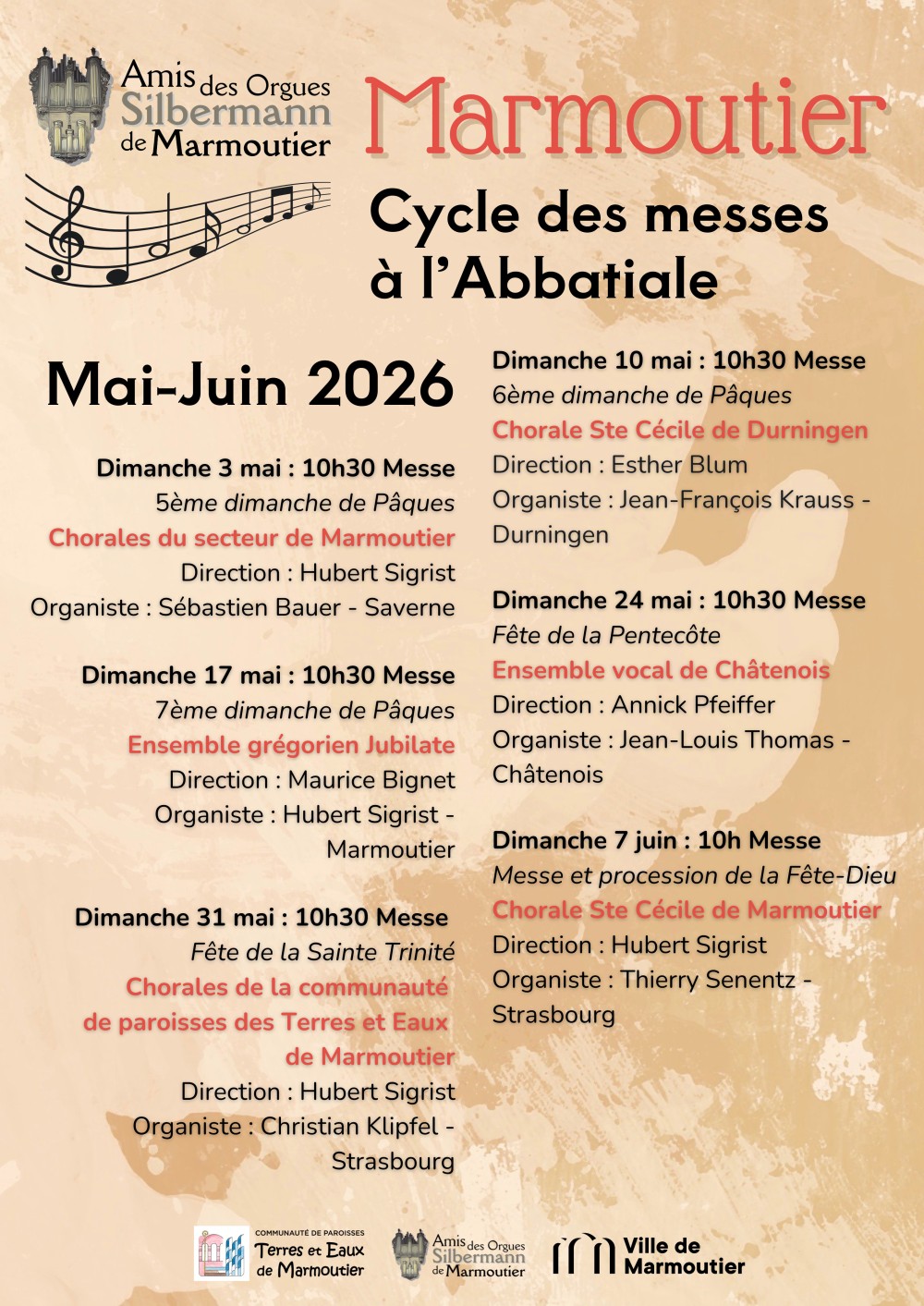 Du dimanche 03 mai 2026 au dimanche 07 juin 2026 Marmoutier : Abbatiale Saint-Etienne Pages liées à l'événement : Eglise abbatiale Saint-Etienne Amis des Orgues Silbermann